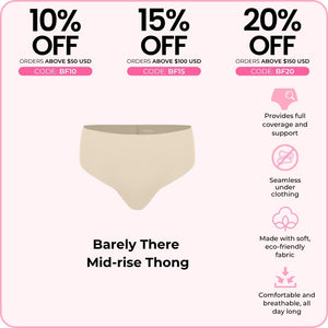 Introducing the BOOMBA Barely There Mid-Rise Thong – like a second skin, but way cuter! Made from ultra-soft, seamless fabric, this little beauty gives you all-day comfort and stays invisible under clothes. The mid-rise fit offers the perfect balance of coverage and style, making it ideal for everyday wear. It’s the little secret you’ll never want to take off!