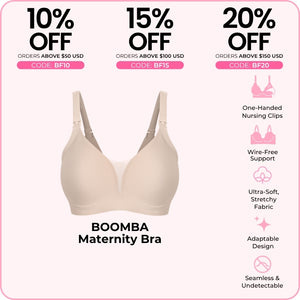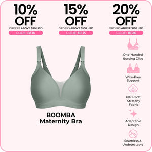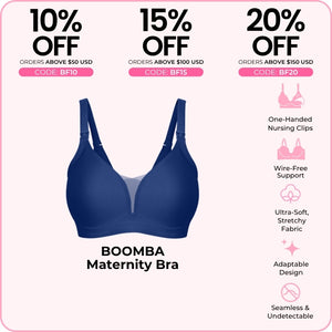 Our BOOMBA Maternity Bra delivers wire-free support with one-handed nursing access for stress-free feeding. Made from ultra-soft, stretchy fabric, it adapts as your body changes while still giving you the lift and support you need. Crafted with premium materials, it stays in shape wash after wash, no sagging, no stretching out.