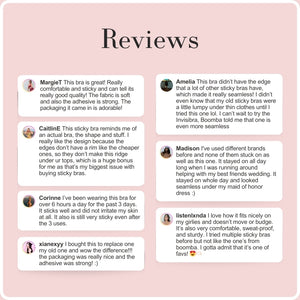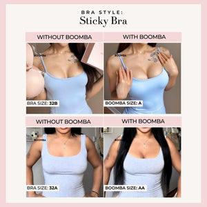 How to Remove: To remove your sticky bra, unclasp and gently peel off one cup at a time, starting from the top outer edge. Reapply protective films onto the sticky bra and store back into the BOOMBA gift box, away from direct sunlight.