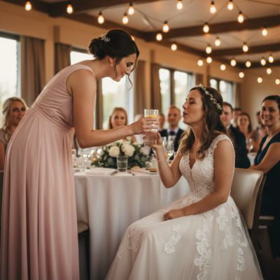 Additionally, it is helpful to take on makeup duty, being prepared to fix any smudges that may occur and ensuring the bride's wedding foundation remains flawless.