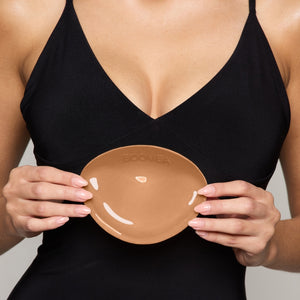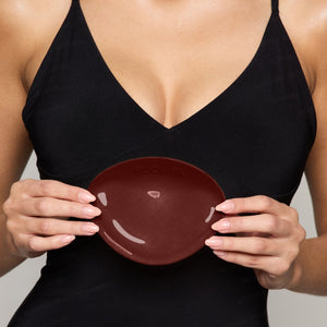 While scooping, press the insert onto the breasts and press firmly to secure.