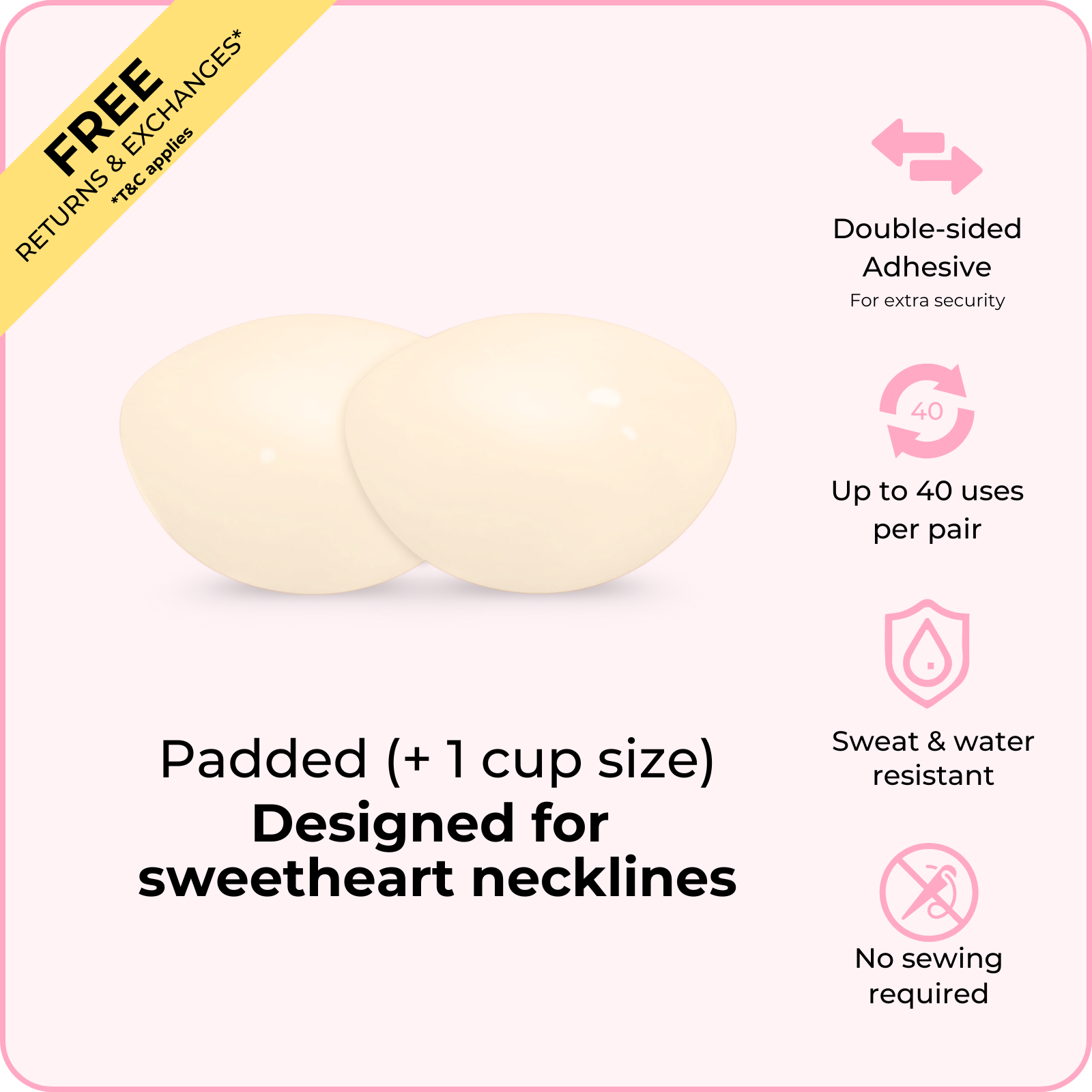 Subtle Lift: The shortened version of our Invisible Lift. Lightly padded, designed to lift and shape without adding size in sweetheart necklines.