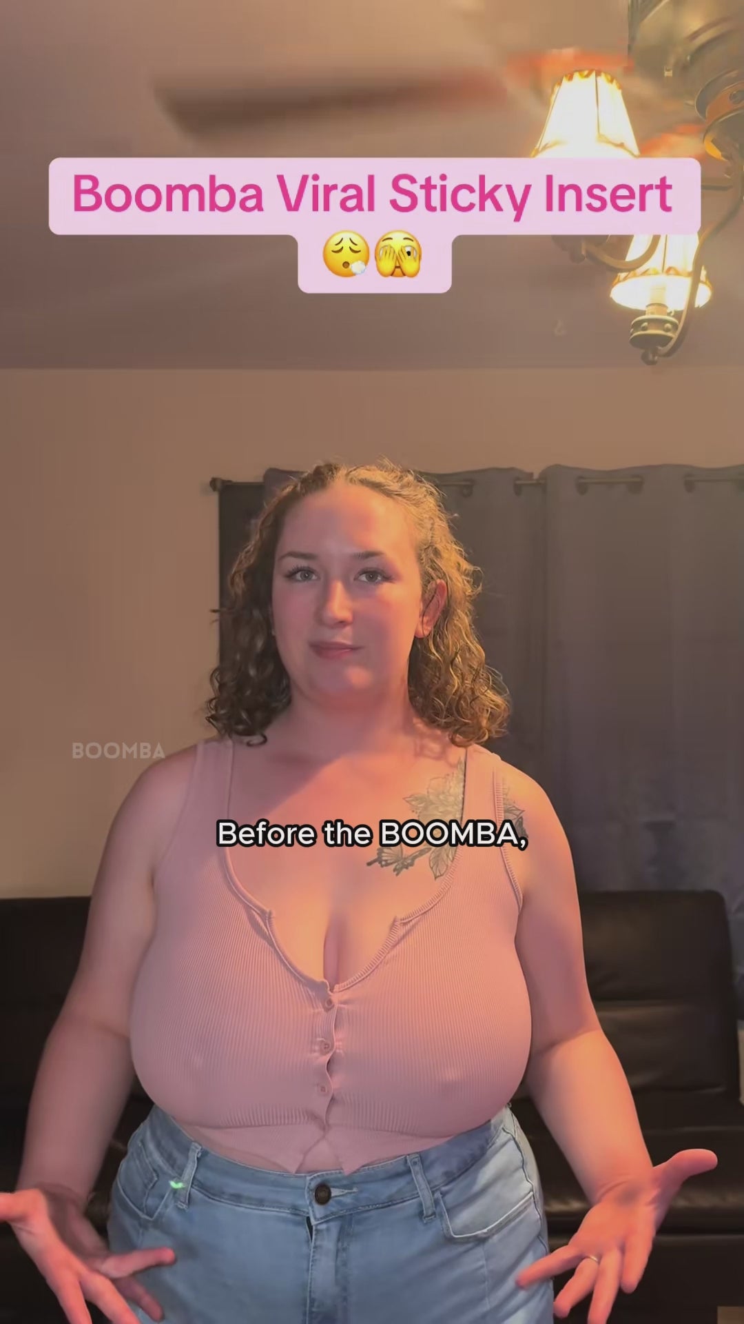 Unlike a sticky bra that is supported by the adhesive, BOOMBA inserts are supported by the clothing, they cannot stay up by themselves. It is crucial to wear them in tight, structured, and fitted tops.