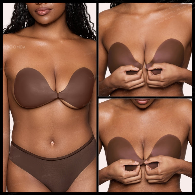 How to Remove: To remove your sticky bra, unclasp and gently peel off one cup at a time, starting from the top outer edge. Reapply protective films onto the sticky bra and store back into the BOOMBA gift box, away from direct sunlight.