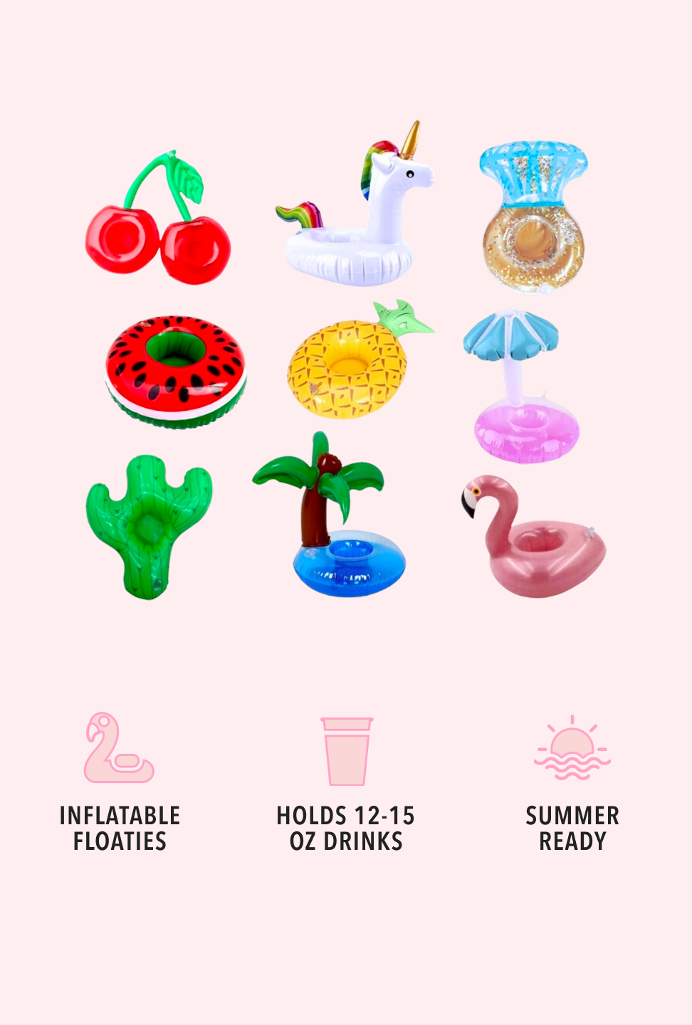 Fun-shaped inflatable drink holders that are perfect for pool parties!