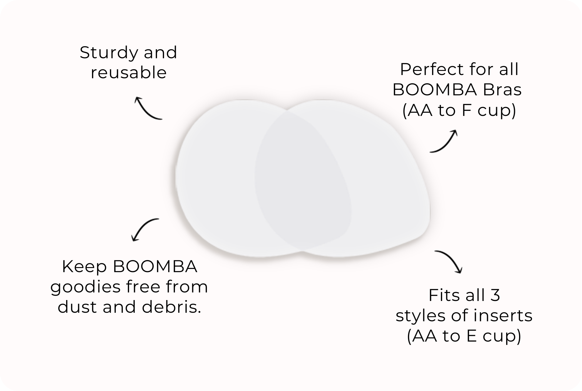 | Fits BOOMBA's Invisibra, Demi Sticky Bra, and Sticky Bra (AA to F cup) | |