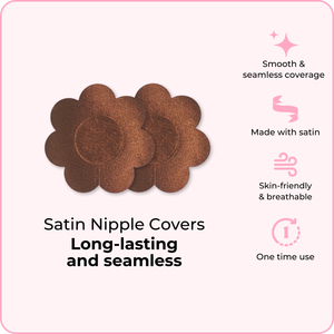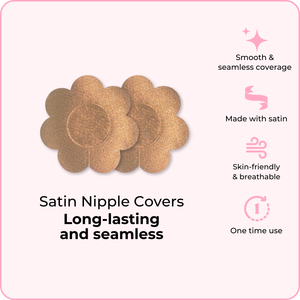 BOOMBA's Satin Nipple Covers lay seamlessly against your skin. Long-lasting and gentle, these nipple covers are a staple in every girl's wardrobe.