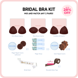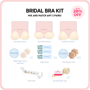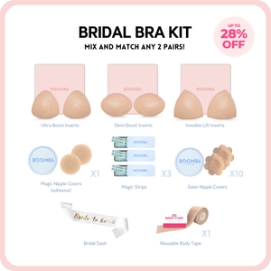 Get completely wedding-ready with the BOOMBA’s Bridal Bra Kit Bundle that has everything a bride needs. From preventing wardrobe malfunctions to creating a more flattering shape, this bundle got you covered.