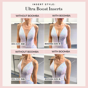 With BOOMBA Inserts' double-sided adhesive feature, they easily stick to your skin onto your clothing, eliminating the possibility of a wardrobe malfunction. With styles ranging from lightly padded to double push-ups, our sticky inserts can add up to TWO cup sizes instantly. No surgery, no downtime!