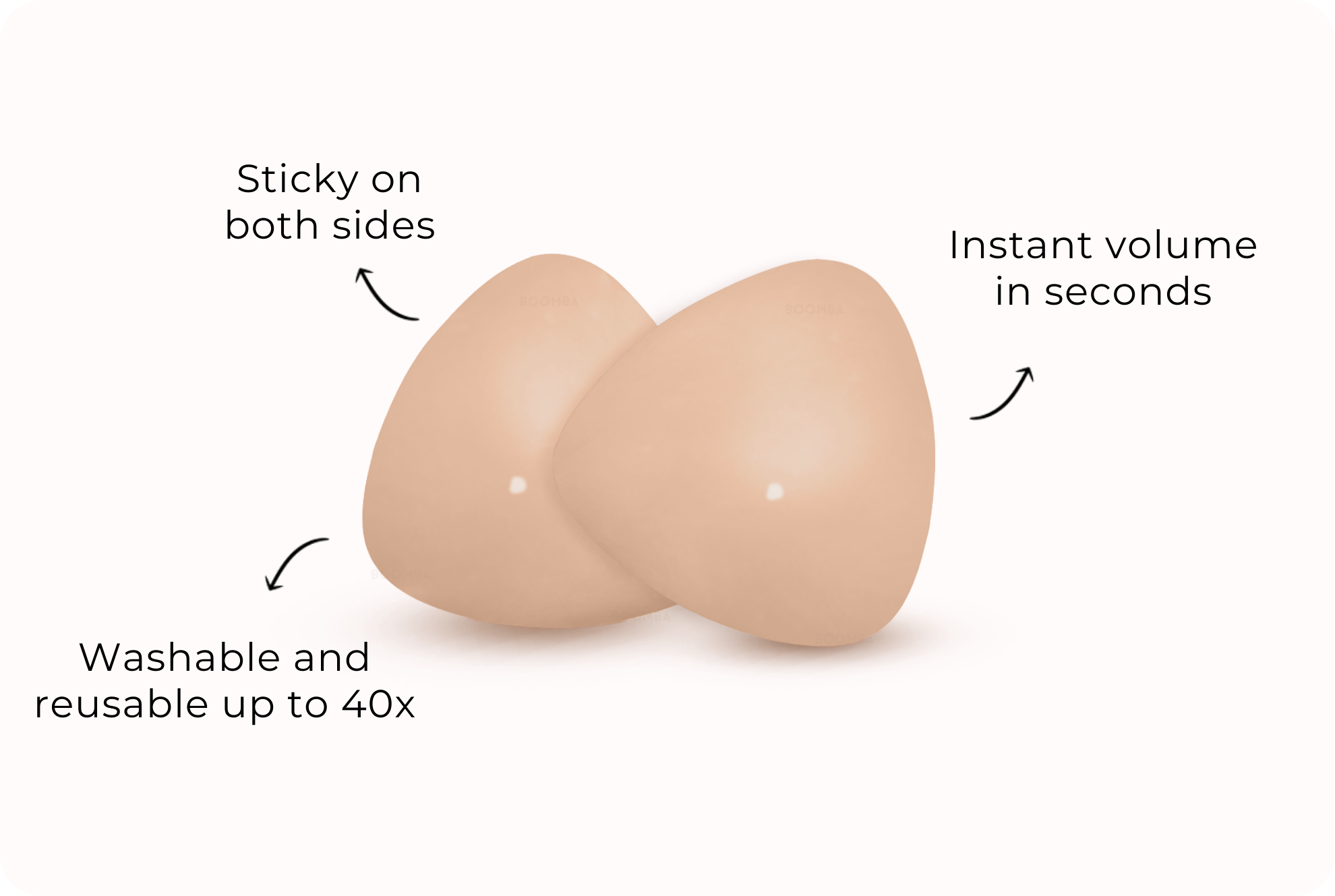 Unlike a sticky bra that is supported by the adhesive, BOOMBA inserts are supported by the clothing and cannot stay up by themselves. It is crucial to wear them in tight, structured, and fitted tops.