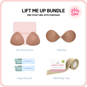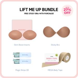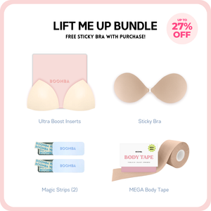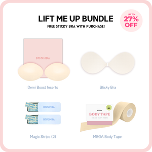 How to Remove: To remove your sticky bra, unclasp and gently peel off one cup at a time, starting from the top outer edge. Reapply protective films onto the sticky bra and store back into the BOOMBA gift box, away from direct sunlight.