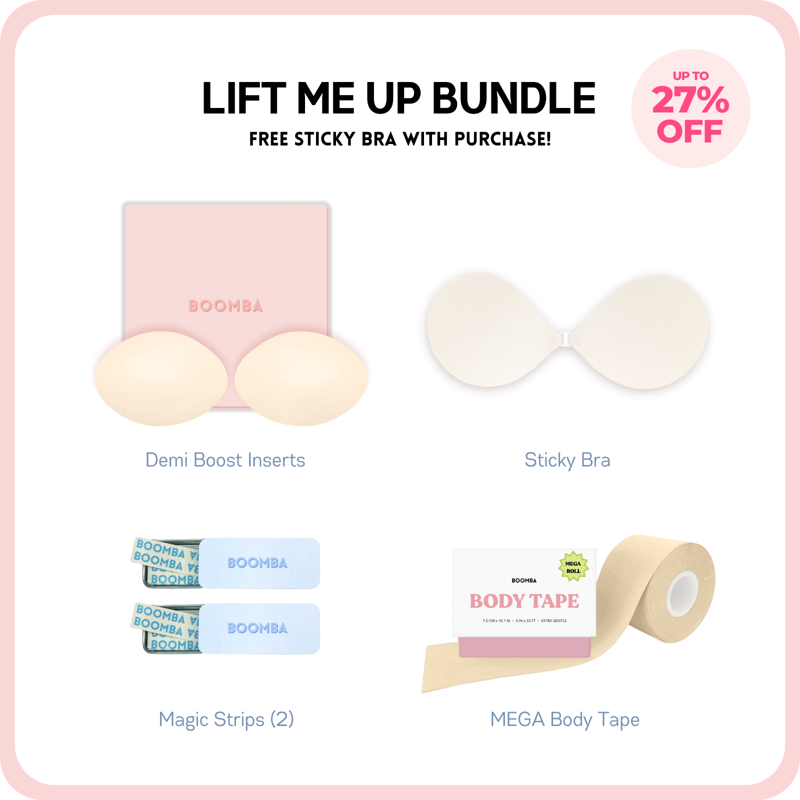 • Demi Boost: The shortened version of our Ultra Boost. Lifts and adds 2 cup sizes, perfect for sweetheart necklines.