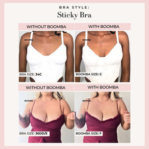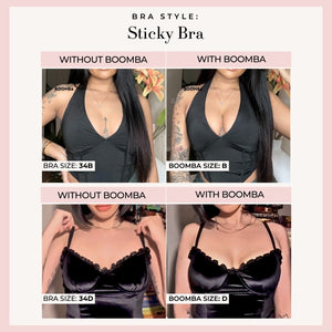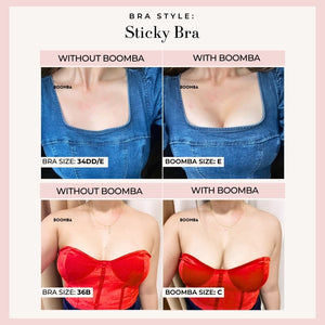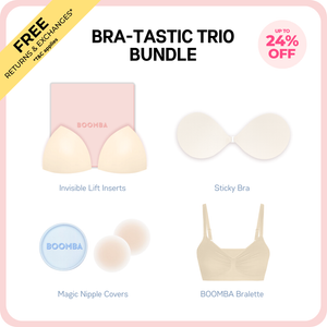 How to Remove: To remove your sticky bra, unclasp and gently peel off one cup at a time, starting from the top outer edge. Reapply protective films onto the sticky bra and store back into the BOOMBA gift box, away from direct sunlight.