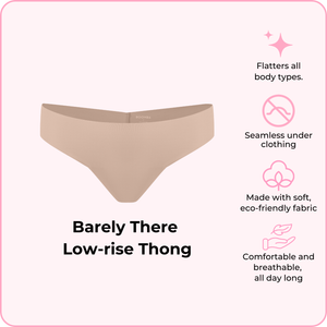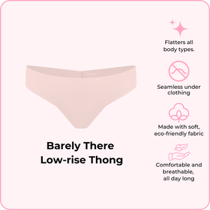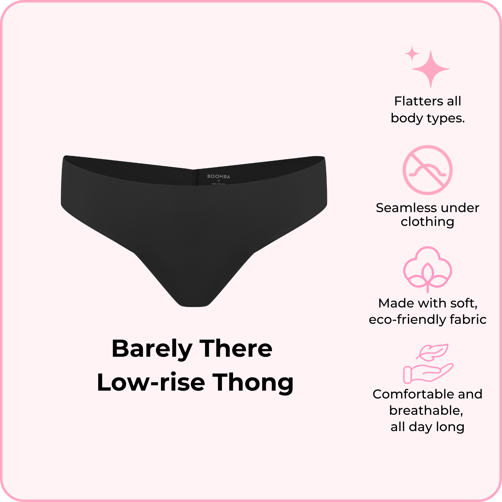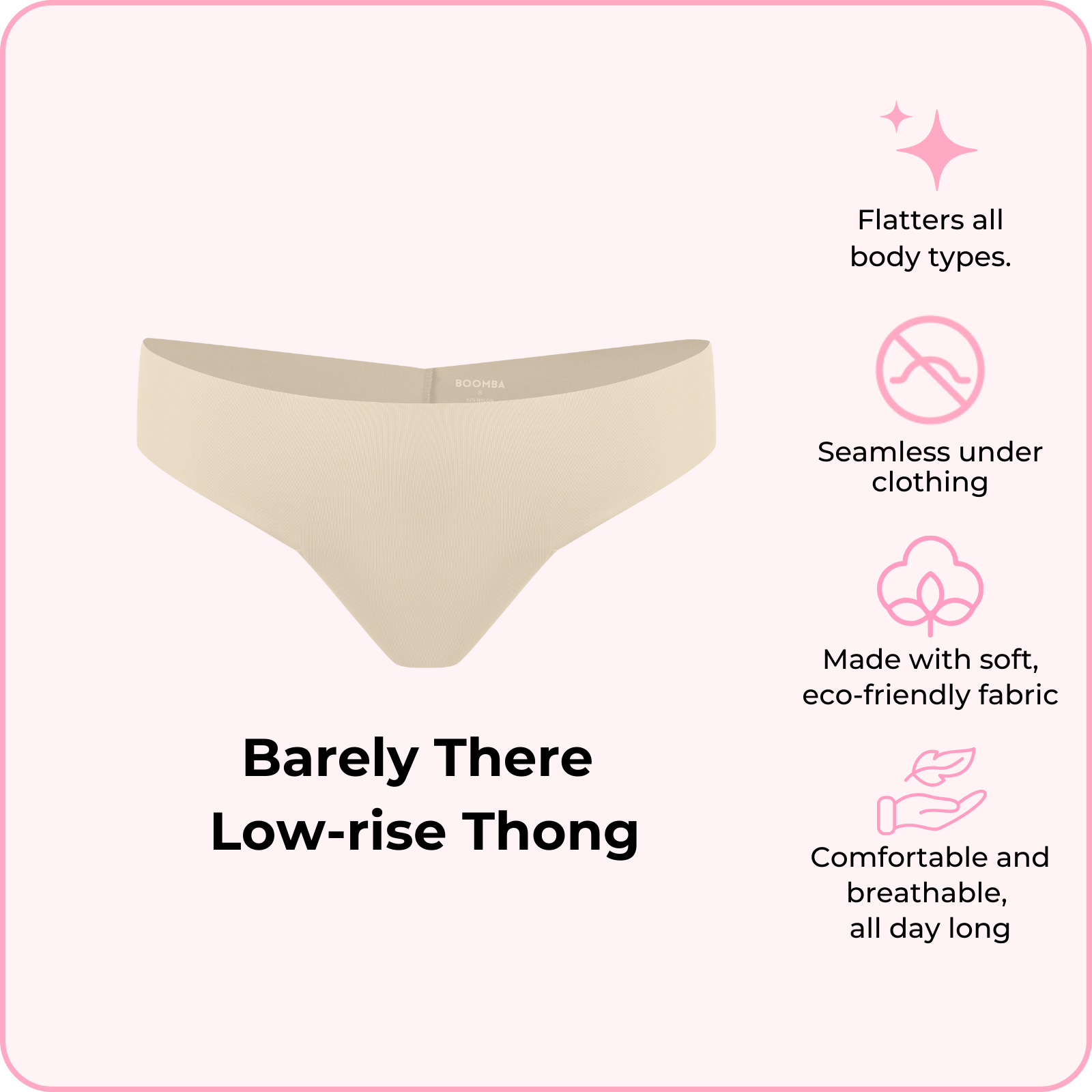 Meet the BOOMBA® Barely There Low-Rise Thong – so lightweight and seamless, you’ll forget you’re wearing it! With a low-rise fit and thong design, it’s the secret to invisible comfort, no panty lines, and all-day wear. Who knew comfort could be this cheeky?