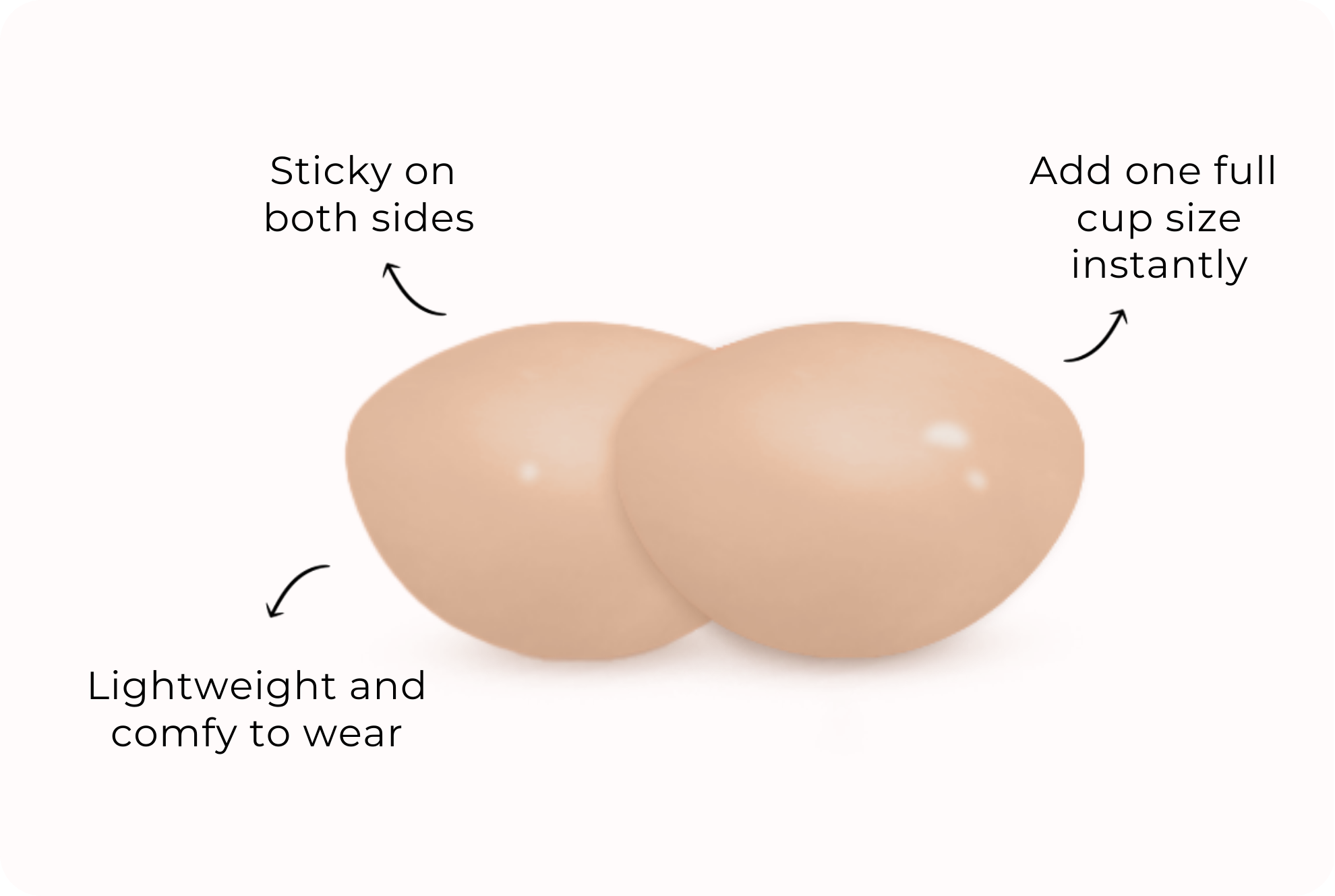 Demi Boost (Lite) Inserts are abalone-shaped inserts that increase your cup size by one cup. They give your bust a fuller look when you wear those plunging necklines and low-cut dresses.