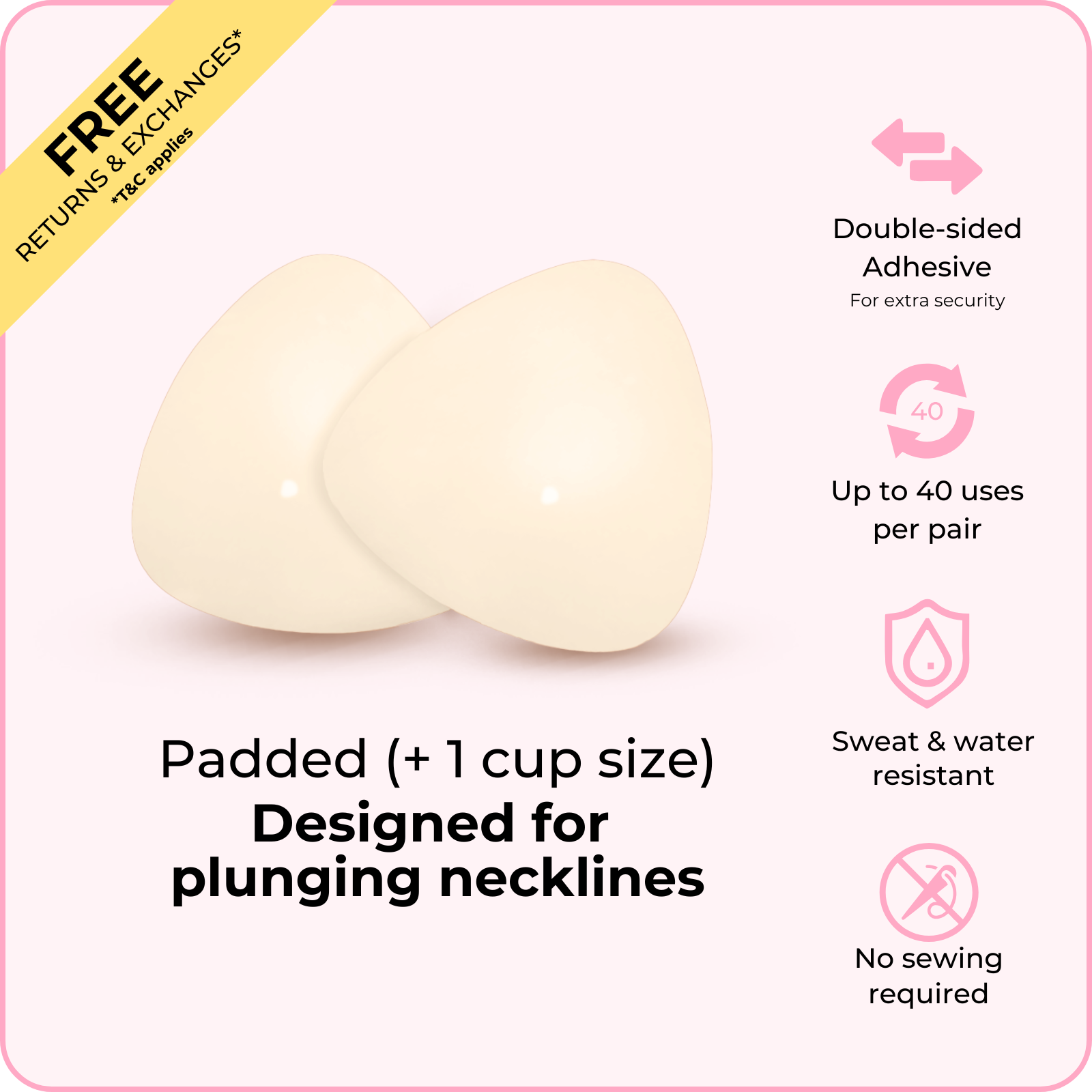 Subtle Lift: The shortened version of our Invisible Lift. Lightly padded, designed to lift and shape without adding size in sweetheart necklines.
