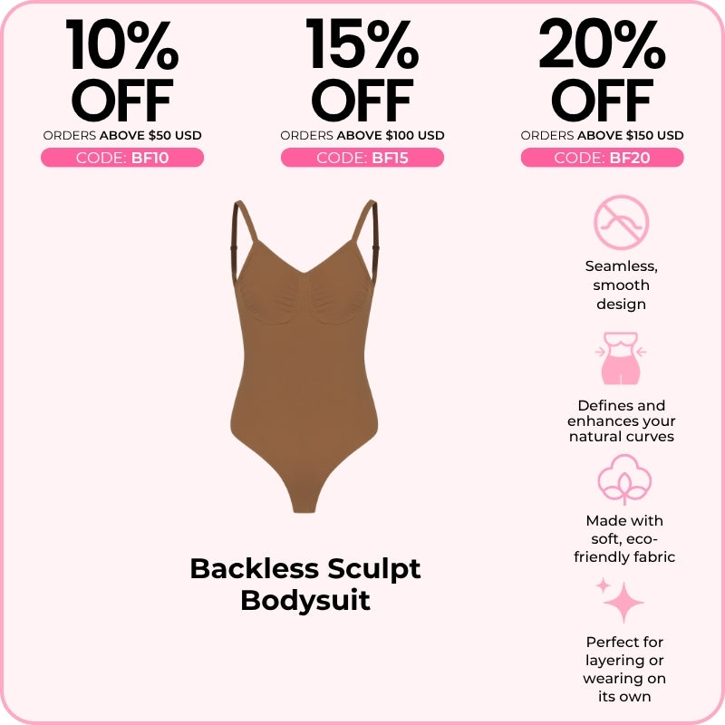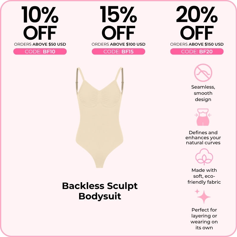 Boost your confidence with the BOOMBA Sculpt Backless Bodysuit! It’s like a secret superpower for your wardrobe—seamless shaping, targeted support, and a smooth, flawless silhouette. The open-back design stays invisible under backless outfits, while breathable fabric keeps you comfortable all day. Perfect for a boost of confidence, whether for special occasions or everyday wear!