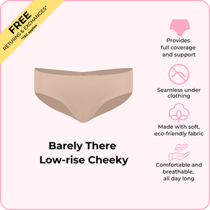 The BOOMBA Barely There Low-Rise Cheeky is like your best-kept secret—ultra-soft, seamless, and oh-so comfy! With a low-rise fit and breathable fabric, it stays invisible under clothes, giving you a smooth, flawless look. Perfect for everyday wear or slipping under your fave form-fitting outfits. Comfort, meet cute!