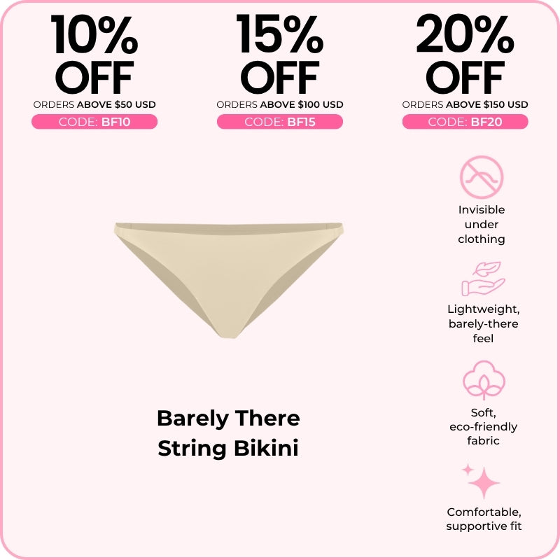 Meet the BOOMBA Barely There String Bikini—where comfort and elegance team up! With its minimalist string design, this bikini feels so light and discreet, it’s practically a second skin. Made from ultra-soft, breathable fabric, it keeps you comfy all day while staying invisible under any outfit. It’s like a hug for your hips—without the awkwardness.