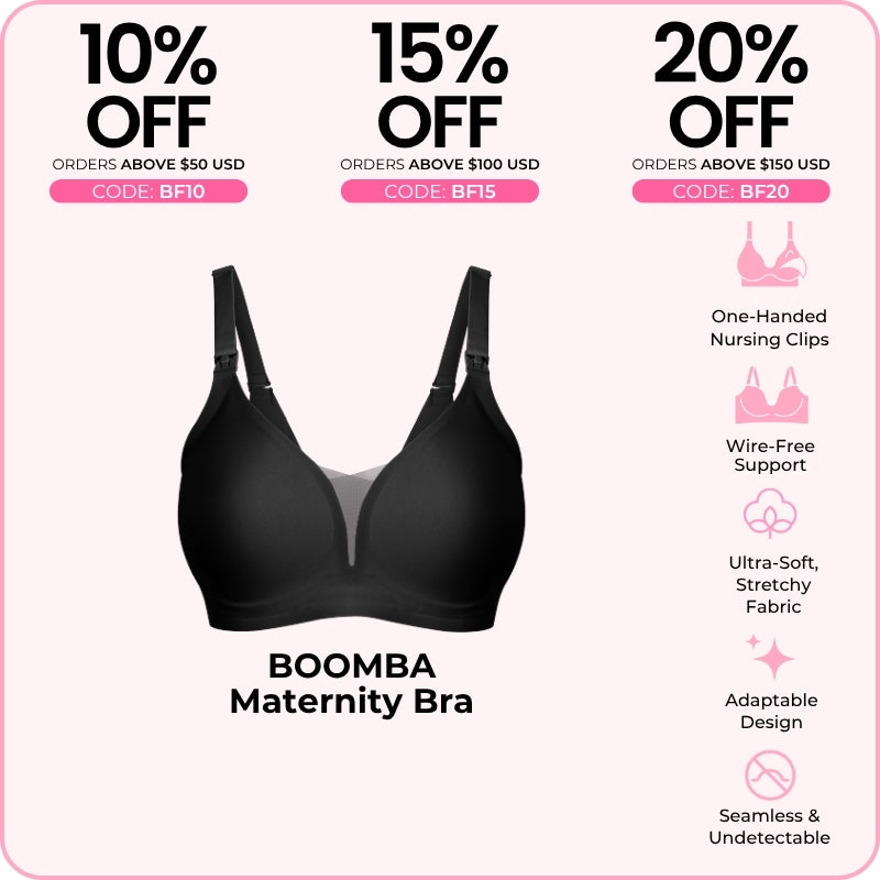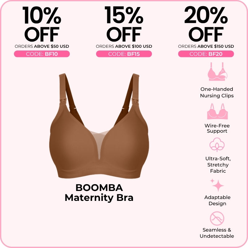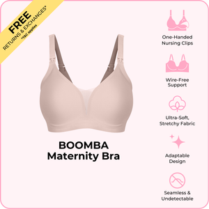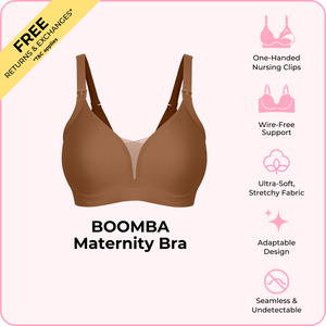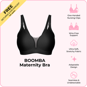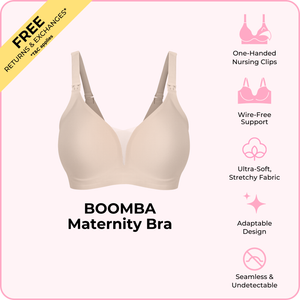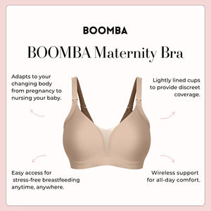 Our BOOMBA Maternity Bra delivers wire-free support with one-handed nursing access for stress-free feeding. Made from ultra-soft, stretchy fabric, it adapts as your body changes while still giving you the lift and support you need. Crafted with premium materials, it stays in shape wash after wash, no sagging, no stretching out.