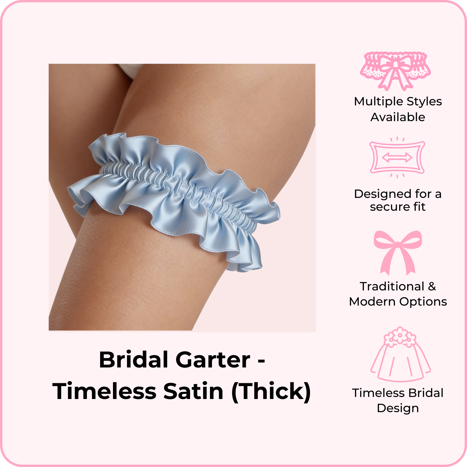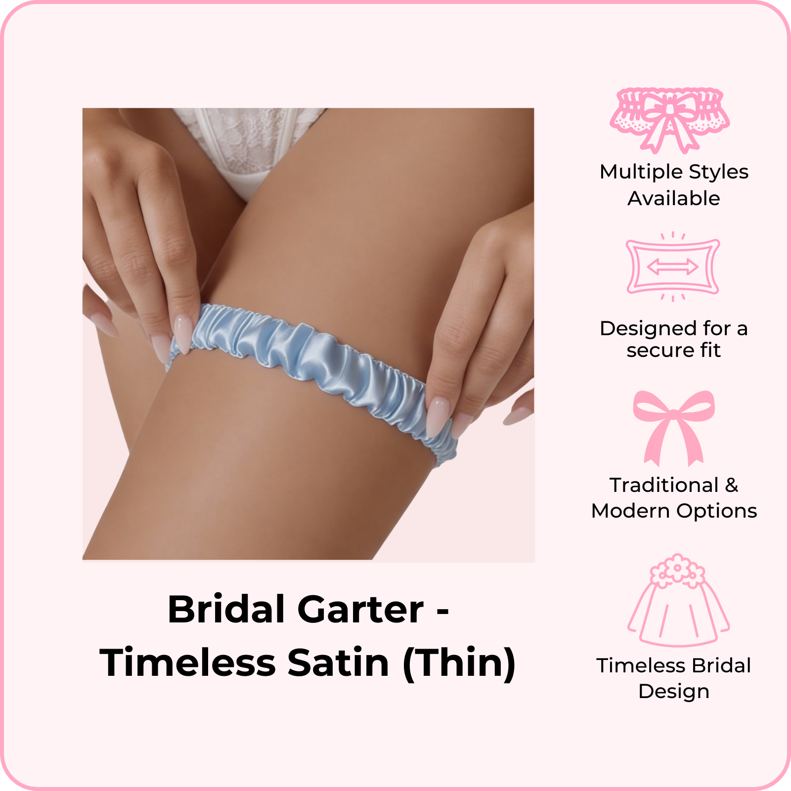 Available in a variety of styles from traditional lace to modern designs, each garter is crafted with soft, delicate fabrics that stay in place securely throughout your big day. Whether you're looking for "something blue" or timeless ivory elegance, we have a style that matches your vision.