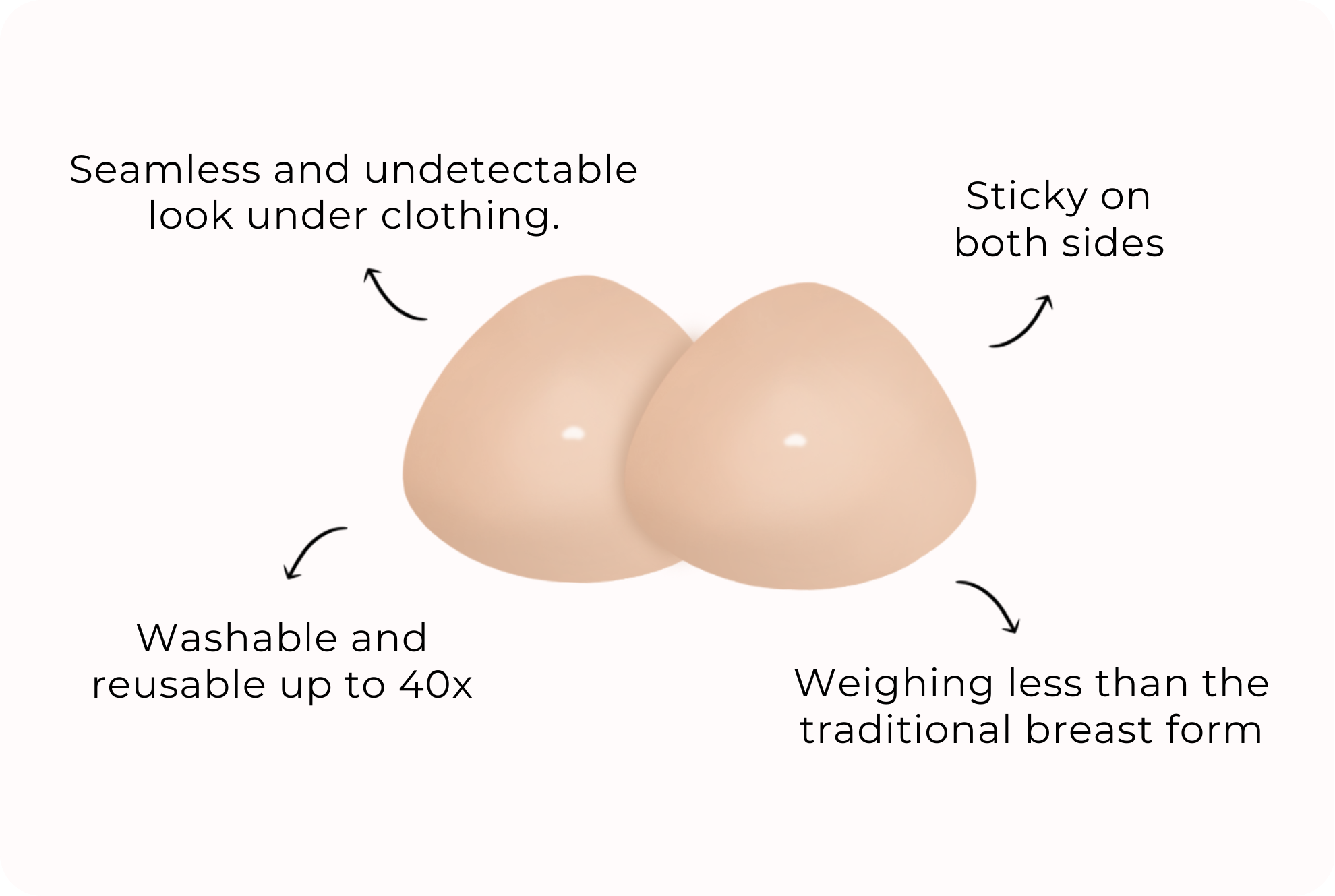 Sticky on Both Sides: Our mastectomy pads are sticky on both sides, sticking to clothing and to skin, ensuring it stays put for all day wear.