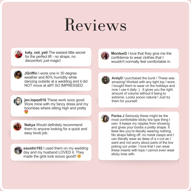 Please note that results may vary depending on breast size and shape. Results will be similar to a push up bra. BOOMBA padded inserts work best with natural breasts.