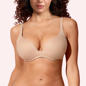 Meet the perfect push-up bra: The Everyday Double Push-Up Bra by BOOMBA. Designed to lift, shape, and enhance, this wireless double push-up bra delivers serious cleavage and support without sacrificing all-day comfort. With a deep plunge neckline that works perfectly under V-necks and low-cut tops, this is the bra that gives you the cleavage you have always dreamed of.