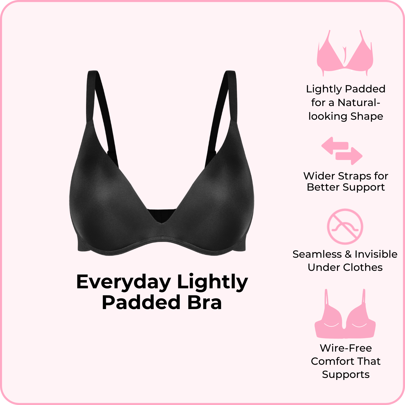 Wider straps and wire-free design to deliver superior support that never digs or restricts.