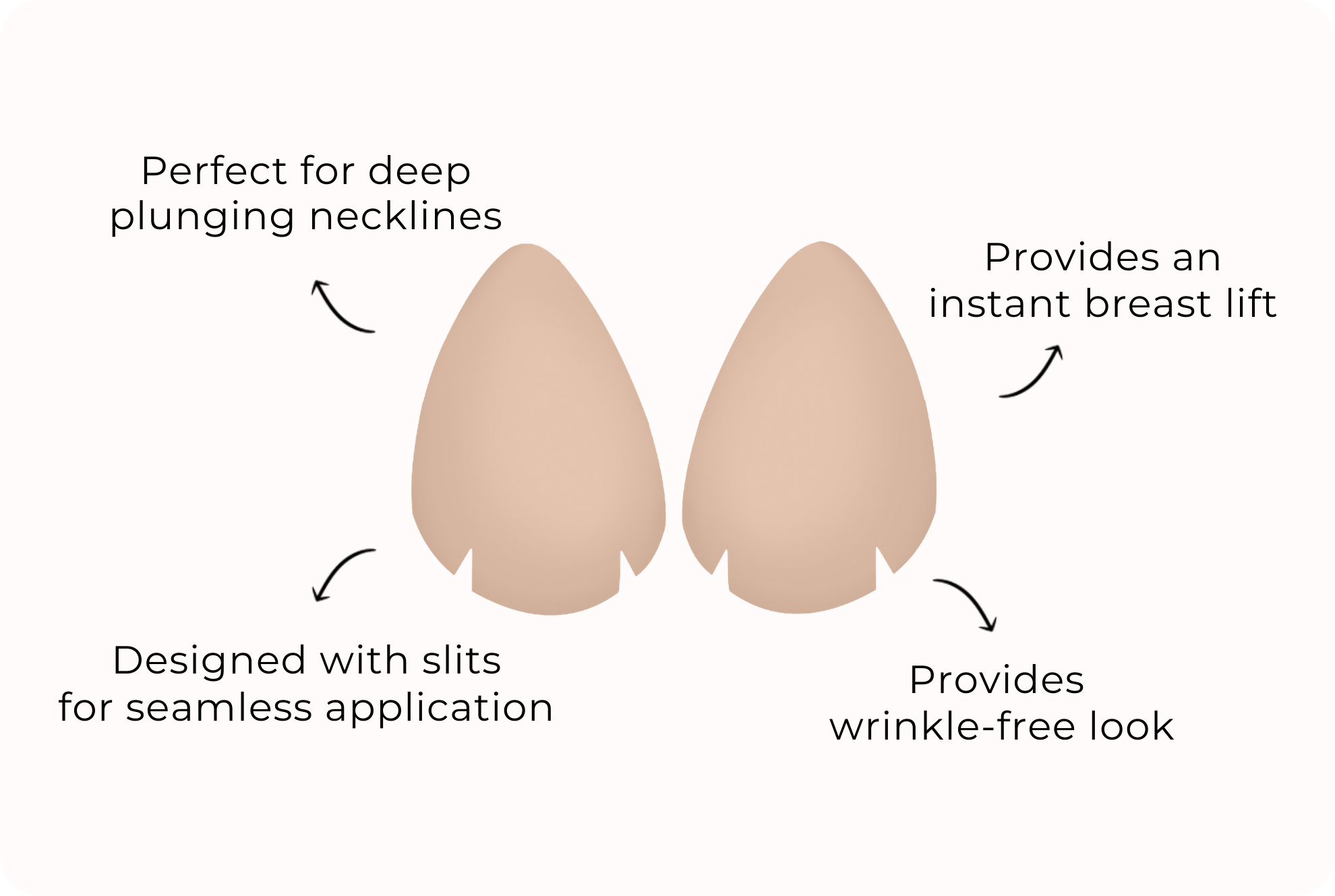 Your hack for an instant, natural-looking lift. Designed to contour with your curves, our pear-shaped body tape features slits for easy adjustments. The result? A wrinkle-free, smooth, lifted look