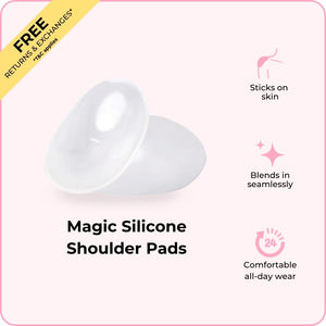 These shoulder pads adhere and contour to the shape of your shoulders, blending in seamlessly for a smooth look under clothing. Our silicone shoulder pads are reusable and comfortable for all day wear.