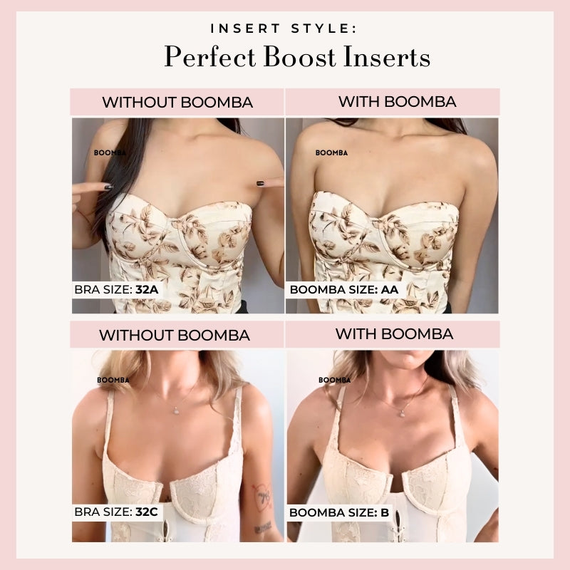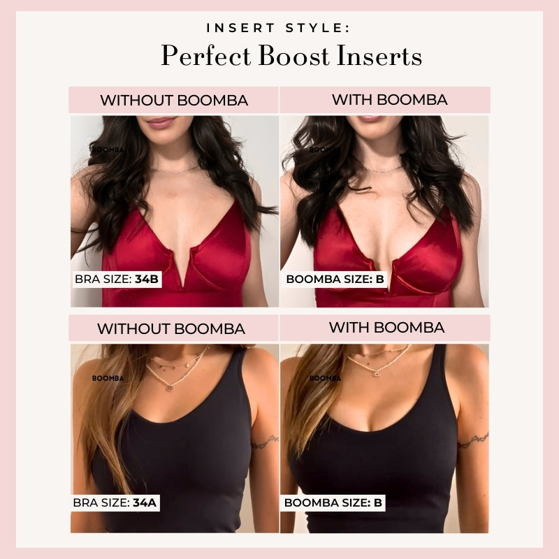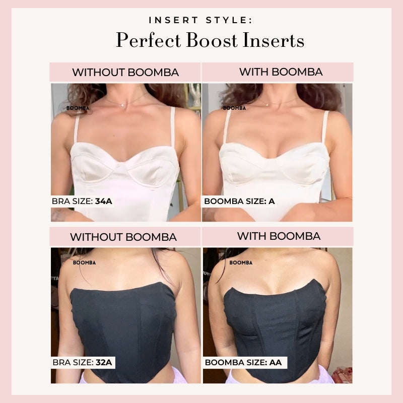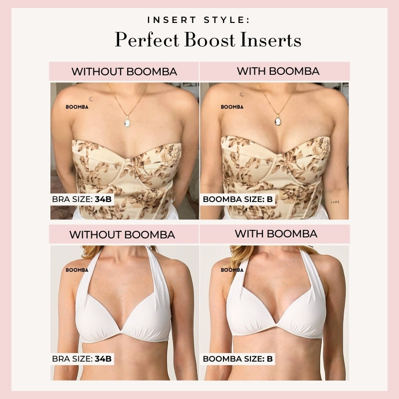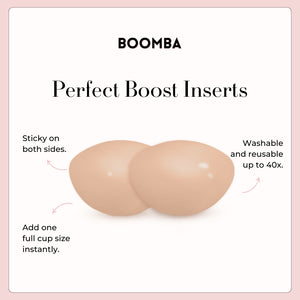 Perfect Boost Inserts are abalone-shaped inserts that increase your cup size by one cup. They give your bust a fuller look when you wear those plunging necklines and low-cut dresses.