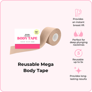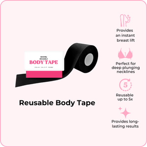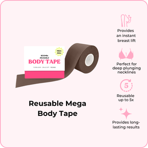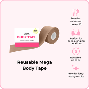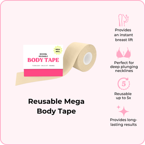BOOMBA®'s Reusable Body Tape can be reusable up to five times. Designed to contour with your shapes, our body tape is gentle yet strong, providing long-lasting results for up to 12 hours.