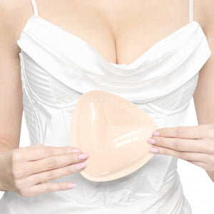 Start by putting on your clothing item. Then, place the inserts inside the garment without touching the skin. Finally, scoop your breasts to your desired position and stick the insert along with your top onto your breast to secure.