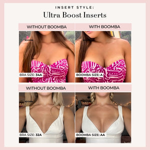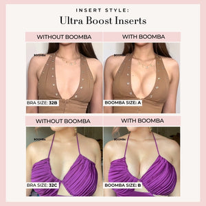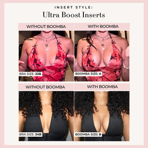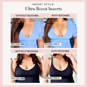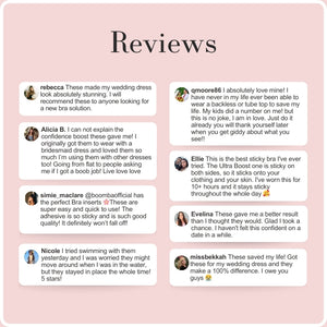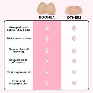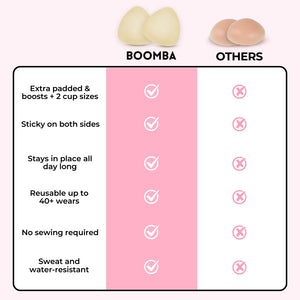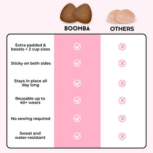 Unlike traditional inserts, BOOMBA inserts are sticky on both sides, which means it sticks to your clothing and to your skin for extra security. Preventing nipple slips and easily staying hidden under clothing.