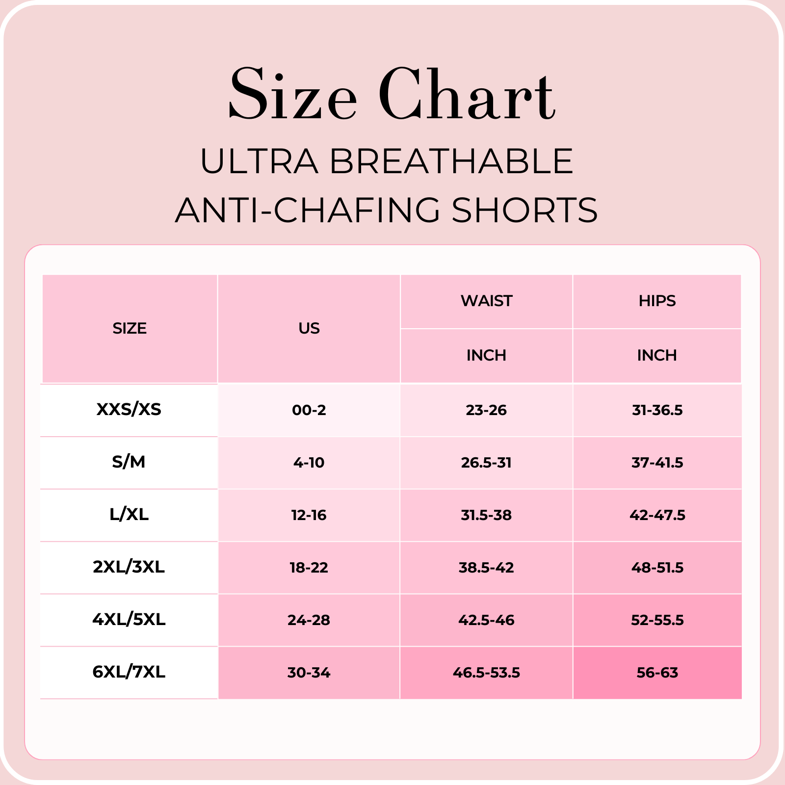 BOOMBA Ultra Breathable Anti-Chafing Shorts Size Guide